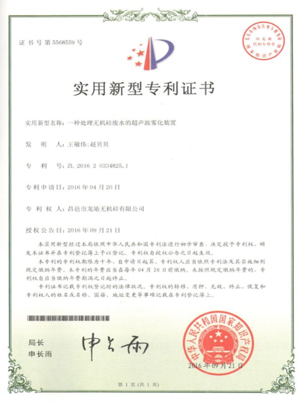 科技成果 科技創(chuàng)新平臺 TECHNOLOGICAL HOME-TECHNOLOGICAL Utility model patent certificate Related Information New Silicon Based Flame RetardantLiquid Potassium SilicateSodium OrthosilicateSodium Silicate LiquidSodium Metasilicate Pentahydrate