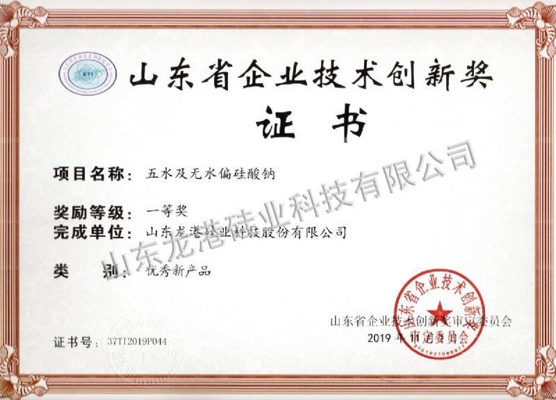社會(huì)榮譽(yù) 科技榮譽(yù) 企業(yè)名片 榮譽(yù)資質(zhì) 首頁-榮譽(yù)資質(zhì) 山東省企業(yè)技術(shù)創(chuàng)新獎(jiǎng)一等獎(jiǎng) 五水及無水偏硅酸鈉項(xiàng)目獲山東省企業(yè)技術(shù)創(chuàng)新獎(jiǎng)一等獎(jiǎng) 相關(guān)信息 硅酸鉀硅酸鋰零水偏硅酸鈉五水偏硅酸鈉速溶硅酸鈉
